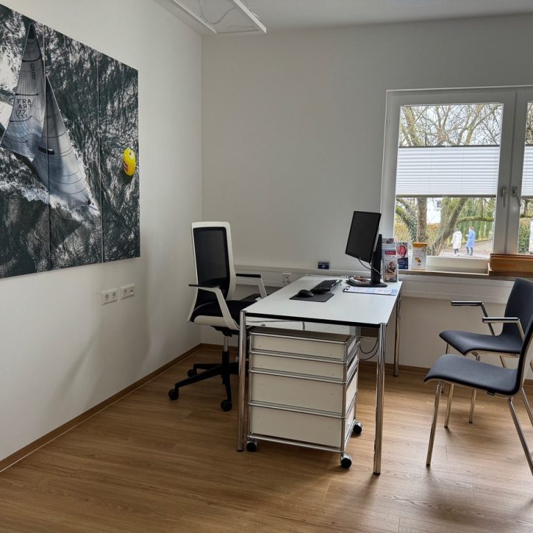 Die Praxis befindet sich im Erdgeschoss und ist von den Praxisparkplätzen problemlos barrierefrei zu erreichen.